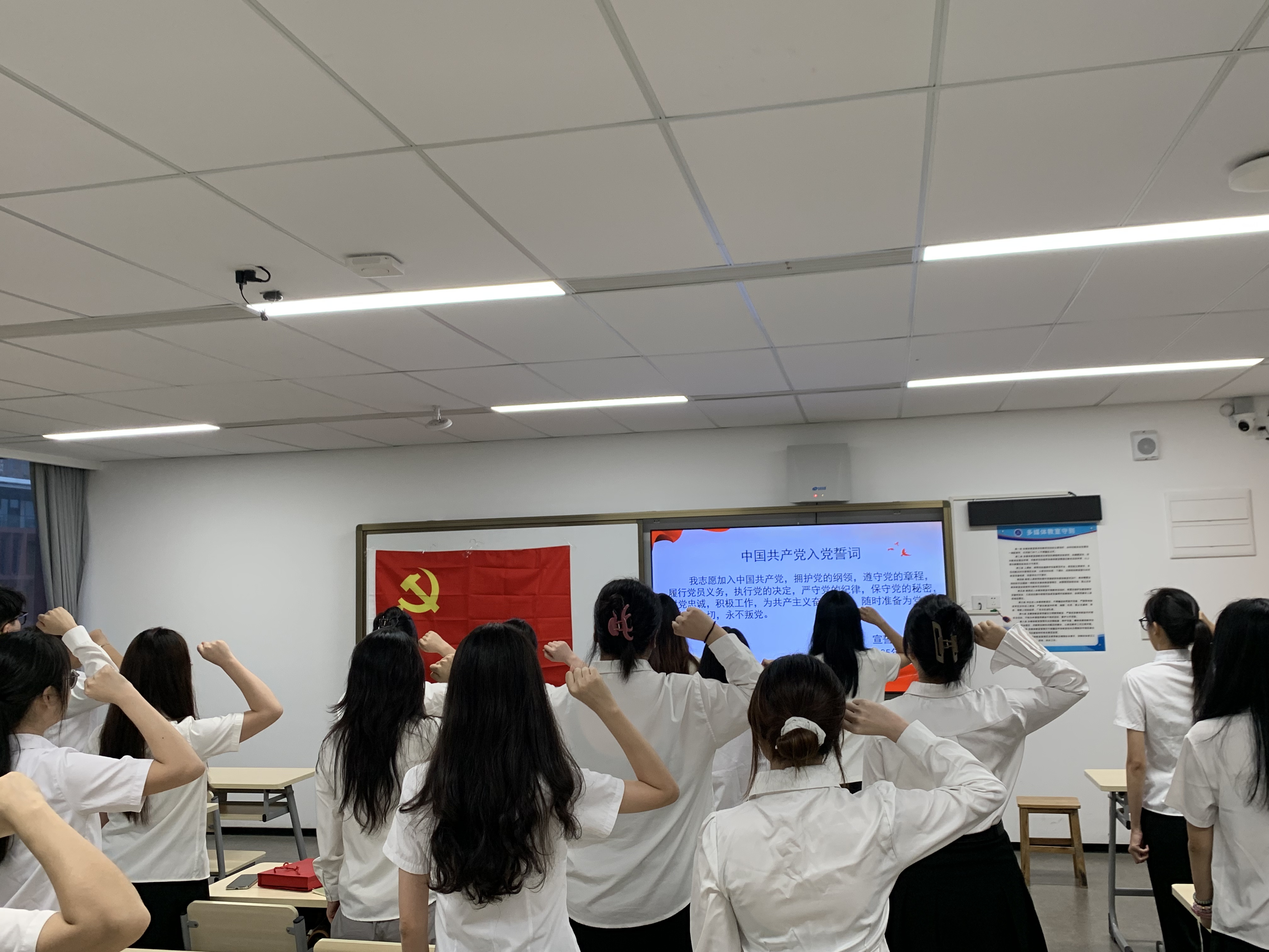 最后,全体党员在刘瑶瑶同志领誓下重温入党誓词,铿锵誓言中重忆庄严承诺,强化党性观念与奋斗使命感。