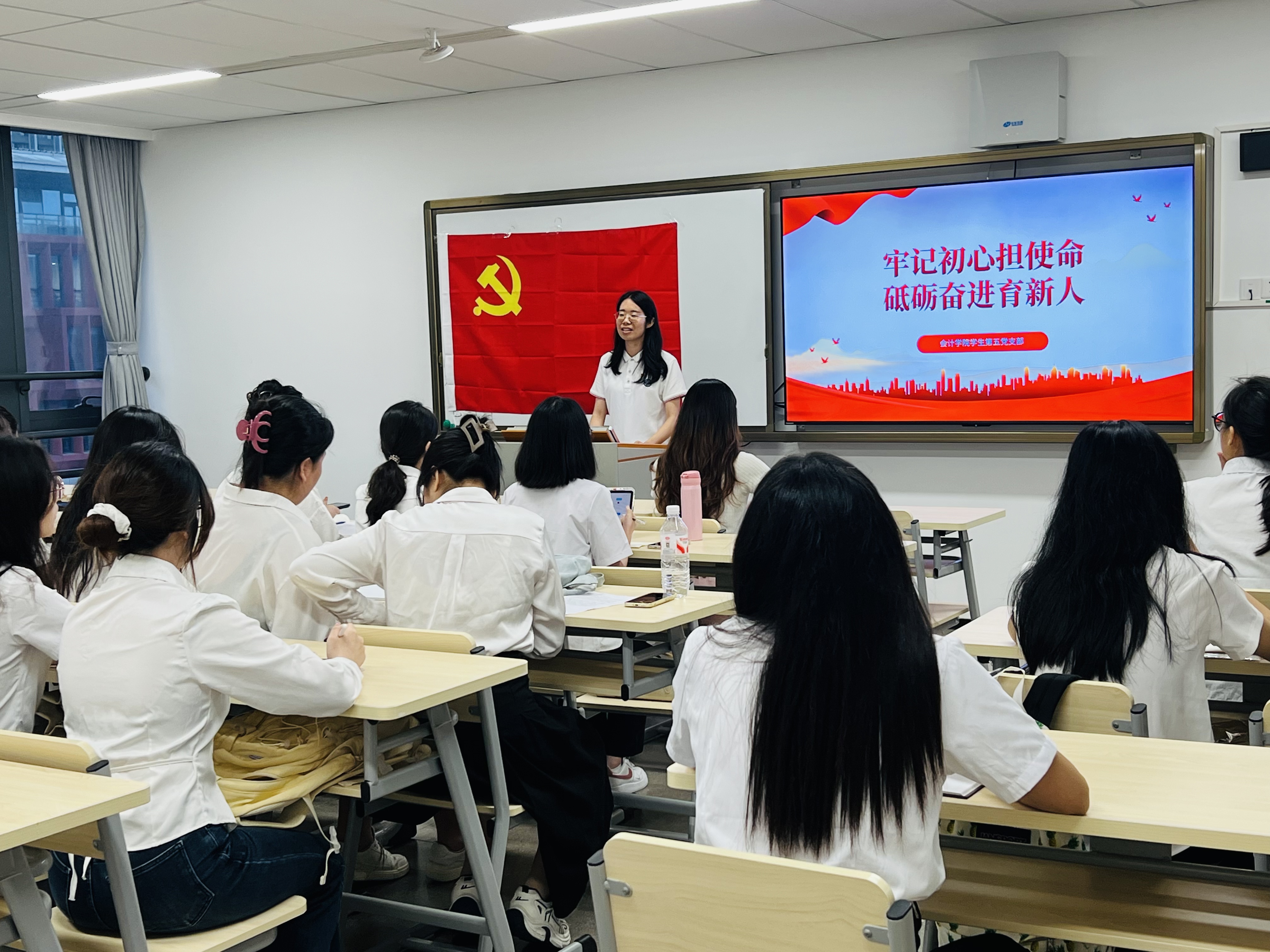 为传承红色基因、强化党员使命担当,会计学院第五党支部于2025年6月17日在九教402召开“牢记初心担使命,砥砺奋进育新人”主题党日活动。会计学院学生第五党支部全体党员参会,会议由会计学院第五党支部书记刘瑶瑶主持。